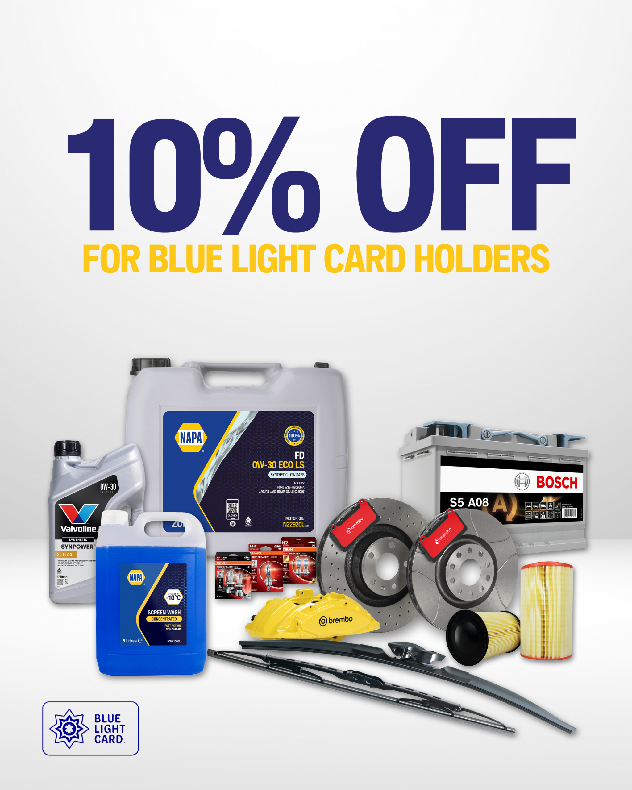 NAPA Auto Parts UK and Ireland is pleased to announce an exclusive 10% discount for all Blue Light Card holders, available across our Light Vehicle (LV) stores. This gesture is our way of expressing gratitude to the emergency service workers...